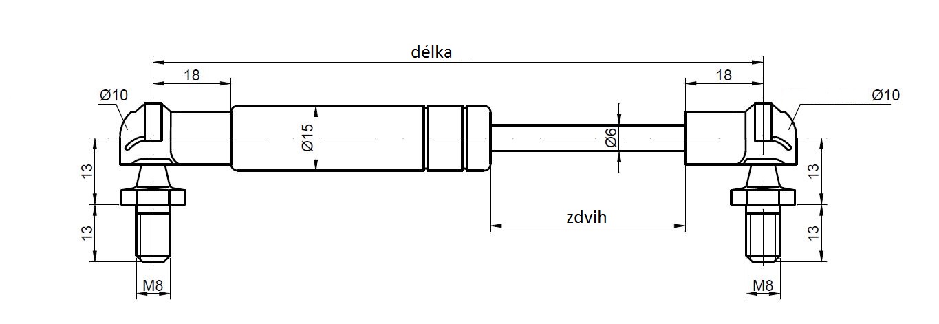 | Koncovka na pístnici: | kloub s čepem M8x10mm |
